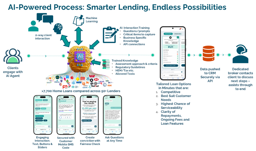 Your AI Agent brings together machine learning, lender policies, regulatory rules and real time conversation to deliver clear, fair and personalised loan options. It improves with every interaction and gives clients the confidence to explore their options without pressure.
