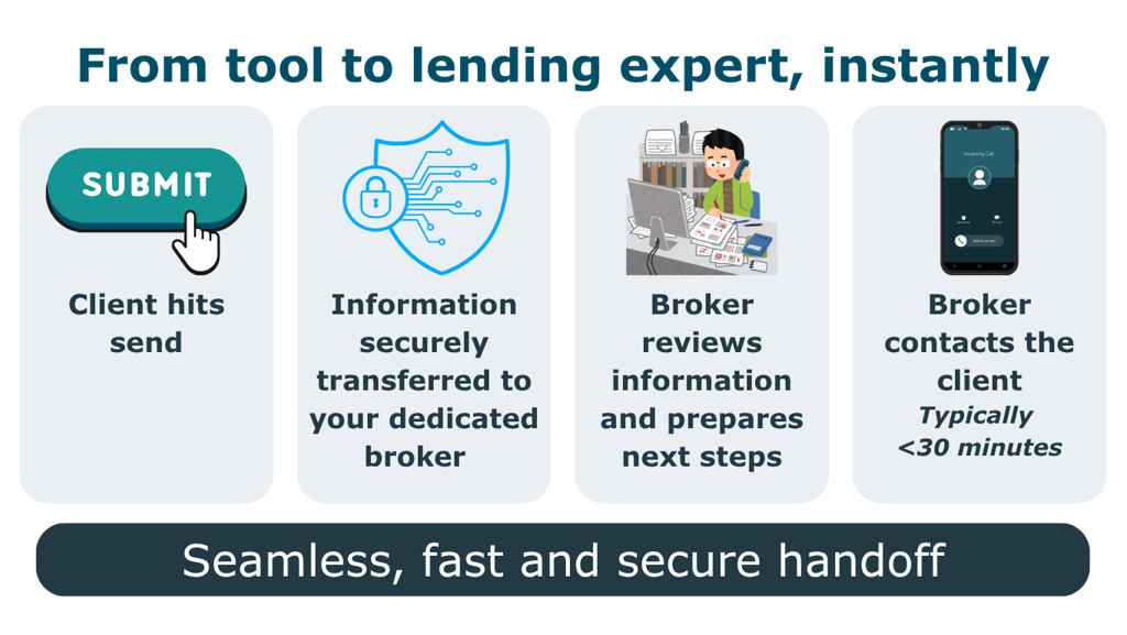 When a client submits a referral from any tool, their details and scenario data flow securely to your dedicated broker.
